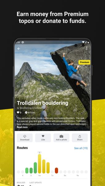 คู่มือปีนหน้าผา – 27 Crags เป็นแอปรูปแบบใหม่ คุณสามารถค้นหาข้อมูลการปีนหน้าผาที่ดีที่สุดในโลกได้ที่นี่ ด้วยแอปนี้ คุณสามารถวางแผนการผจญภัยครั้งต่อไปและค้นหาสถานที่ที่เหมาะสมที่สุดในการปีน คุณสามารถเรียกดูฐานข้อมูลของ topos สร้างของคุณเอง และแบ่งปันกับชุมชน